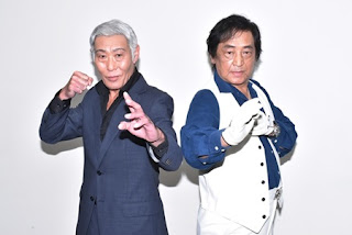 | Tetsuya Nakayashiki (suit actor V3) dan Hiroshi Miyauchi di tahun 2017. |